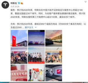 特斯拉称,预计到2020年底,超充和目充桩总量达7000余个, 覆盖全国各主要城市及城市间连接线。到2020年底,该公司在中国大陆开设体验店与服务中心将超过180家,覆盖全国超过50个城市。