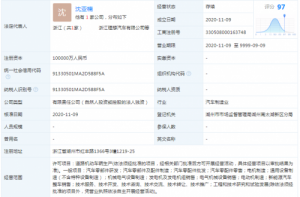 天眼查显示,11月9日,浙江理想汽车有限公司成立,注册资本为10亿元人民币,法定代表人为沈亚楠,由北京车和家信息技术有限公司全资持股。经营范围包括汽车零部件研发、汽车零部件及配件制造、汽车零配件批发、汽车零配件零售、电机制造、新能源汽车整车销售等。