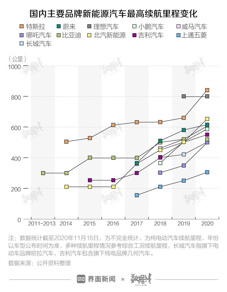 特斯拉进入中国市场以来,其各车型中续航里程最大值自2014年的502公里,增长至2020年发布的Model S Plaid车型的840公里,6年间增幅达67%,相较去年各车型最高续航里程660公里增长达27%。