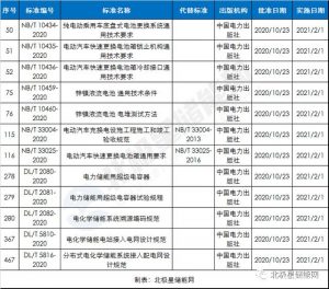 北极星储能网获悉,近日,国家能源局发布2020年第5号公告,批准一批能源行业标准,其中储能部分包含电力储能用超级电容器、电化学储能系统溯源编码规范、电化学储能电站接入电网设计规范、分布式电化学储能系统接入配电网设计规范等7项,以及5项电动汽车换电标准。新标准将于2021年2月1日开始实施。