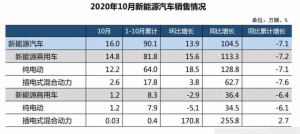 近期,中汽协最新通报数据显示:2020年10月新能源汽车产销分别完成16.7万辆和16万辆,同比分别增长69.7%和104.5%。预计全年新能源汽车销量将超110万辆。
