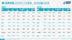 12月8日,乘联会发布2020年11月份全国乘用车产销数据。