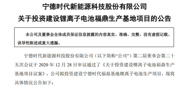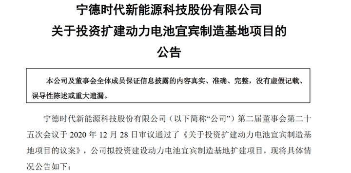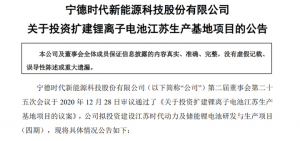 公告显示,宁德时代拟在江苏省溧阳市中关村高新区内投资建设江苏时代动力及储能锂电池研发与生产项目(四期),项目总投资不超过人民币120亿元;拟在四川省宜宾市临港经济技术开发区内投资扩建动力电池宜宾制造基地项目,项目总投资不超过人民币100亿元;拟在福建省宁德市福鼎市投资建设锂离子电池福鼎生产基地,项目总投资不超过人民币170亿元。