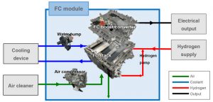 丰田为建立氢能社会采取了各种举措,如销售FCEV车型“Mirai”和“SORA”公交车、向其它公司出售FC系统以及减免其FCEV相关专利许可的版税。通过上述经验,丰田了解到,行业中有很多FC产品公司都在寻找可与其产品简单适应的FC系统。