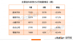 销量回落,是目前公布了2月交付情况的造车新势力车企的主旋律。