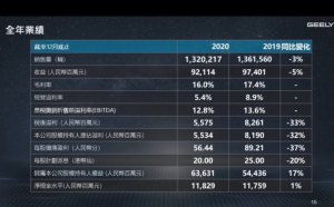吉利2020年度主要财务指标(来源:吉利汽车2020年度财报截图)