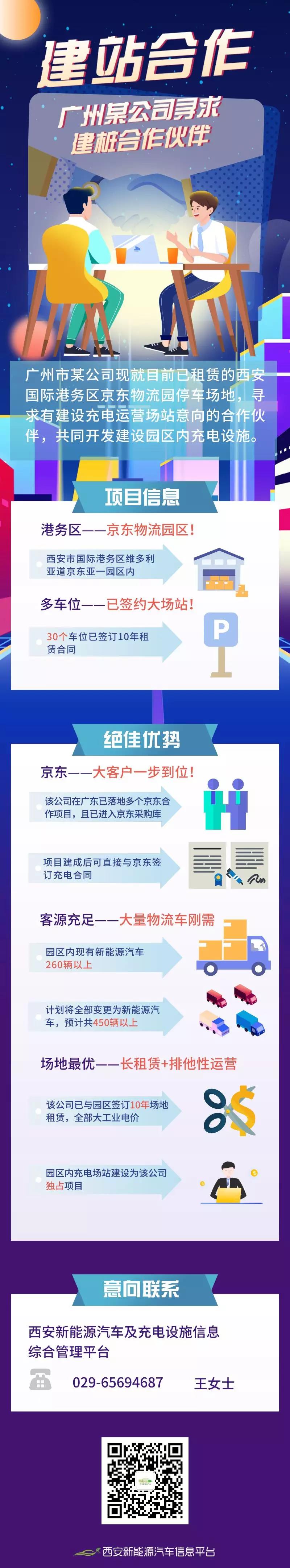 广州市某公司先就目前已租赁的西安国际港务区京东物流园停车场地,寻求有建设充电运营场站意向的合作伙伴,共同开发建设园区内充电设施。