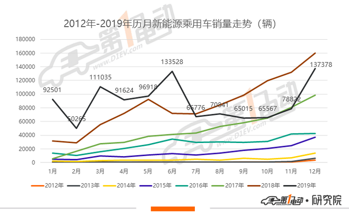 2019年最后一个月,新能源乘用车市场终于迎来了一个小爆发,但比起往年的“翘尾效应”,这个爆发更多地有些聊胜于无的味道,最终,2019年新能源乘用车市场以连续六个月同比负增长结束。