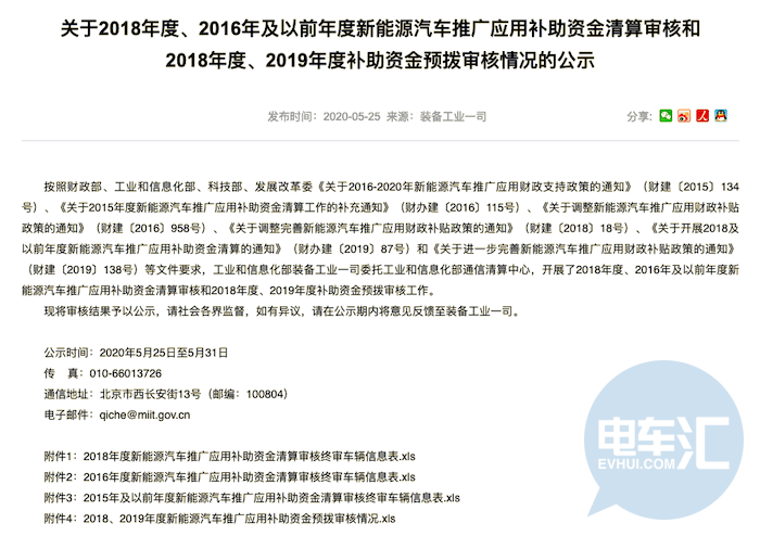 5月25日,工信部发布了关于2018年度、2016年及以前年度新能源汽车推广应用补助资金清算审核和2018年度、2019年度补助资金预拨审核情况的公示,此次补贴清算涉及的年份主要是2018年、2016年、2015年及以前的新能源汽车补贴,按照工信部对补贴明细文件的命名,此次清算的这几个年度的新能源汽车补贴属于终审清算,据电车汇统计,工信部此次共计清算补贴782820万元。
