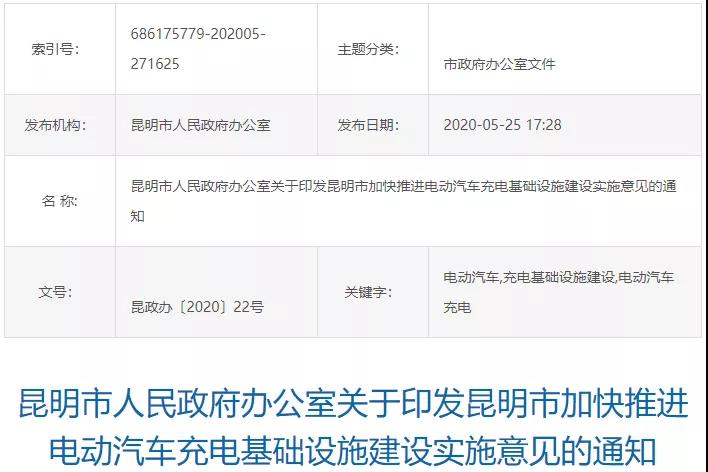 此外,《意见》提出加大政策资金支持:对在昆明市投资建设,通过验收并对社会运营,已接入市级新能源平台的充换电设施、集中式充换电示范站、充电设施示范小区给予财政补贴。