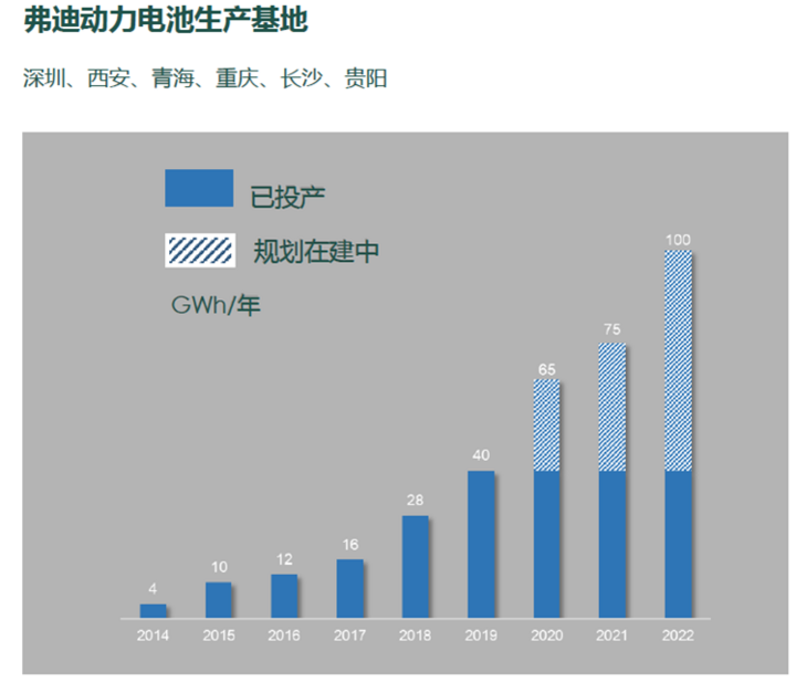 根据规划,弗迪动力电池产能在2020年将达到65GWh,2022年则要突破100GWh。