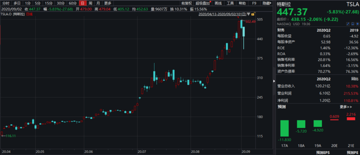 截至周三收盘,特斯拉股价报447.37美元,跌幅5.83%,市值4168亿美元。特斯拉股价今年以来已累计上涨465%以上。