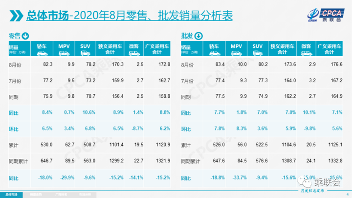 9月8日,乘联会发布2020年8月份全国乘用车产销数据。